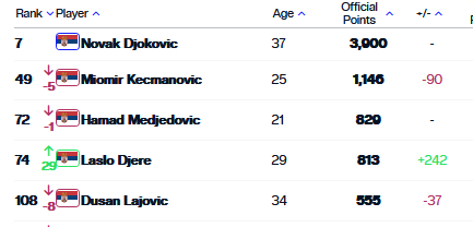 Teme: ATP, ATP Rang Lista, Dušan Lajović, Hamad Međedović, Janik Siner, Laslo Đere, Miomir Kecmanović, Novak Đoković, Rang Lista, Tejlor Fric, Teniseri, Turniri, Vesti