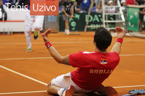Janko Tipsarevic slavi pobedu u polufinale Dejvis Kupa protiv Kanade