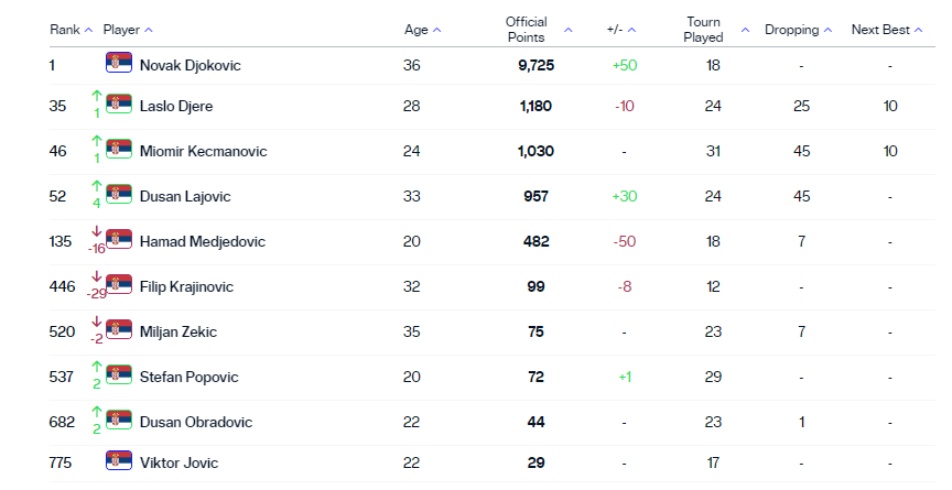 Teme: ATP Rang Lista, ATP trka, Novak Đoković, Rang Lista, Teniseri, Vesti