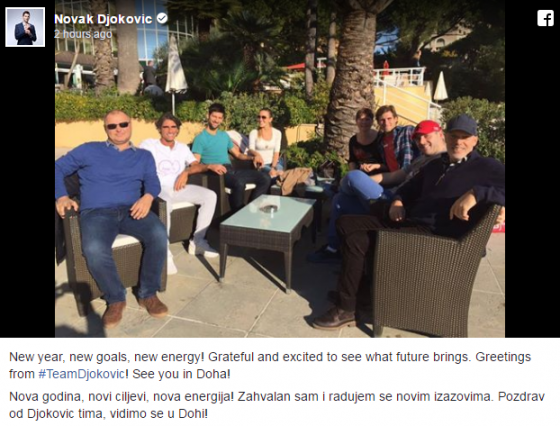 – Nova godina, novi ciljevi, nova energija! Zahvalan sam i radujem se novim izazovima. Pozdrav od Đoković tima, vidimo se u Dohi – napisao je Đoković na svom Fejsbuk profilu.