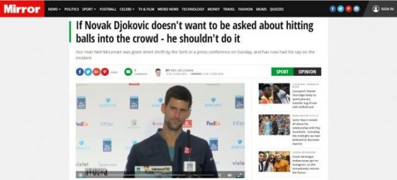Puno pažnje teniske javnosti izazavao je verbalni sukob Novaka Đokovića sa britanskim novinarom, koji je dan kasnije u tabloidno orijentisanom listu “Miror” napisao i kolumnu na temu ponašanja srpskog asa.