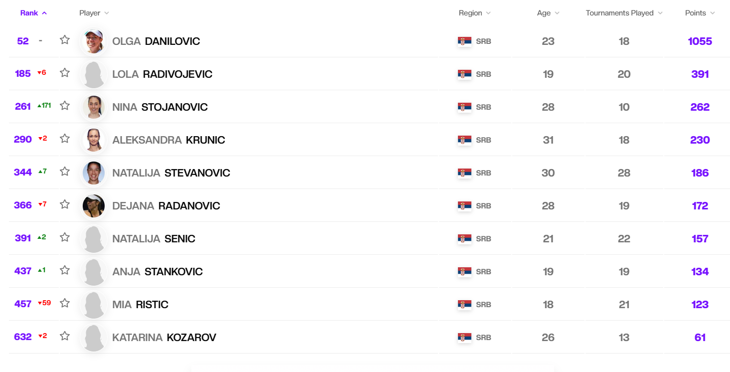 Teme: Aleksandra Krunić, Darija Kasatkina, Koko Gof, Lola Radivojević, Nina Stojanović, Olga Danilović, Rang Lista, Teniserke, Vesti, WTA, WTA Rang Lista
