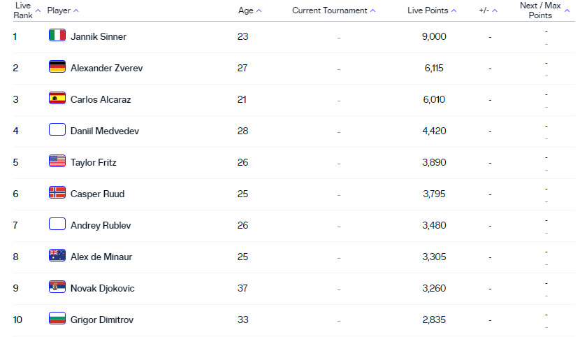 Đoković brani još dva velika trofeja, 1.000 bodova na Mastersu u Parizu i 1.300 na Završnom u Torinu. Treba istaći da još uvek nije obezbedio učešće na drugopomenutom takmičenju.