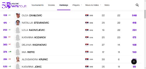Srbija bez teniserki među 100 najboljih na WTA listi