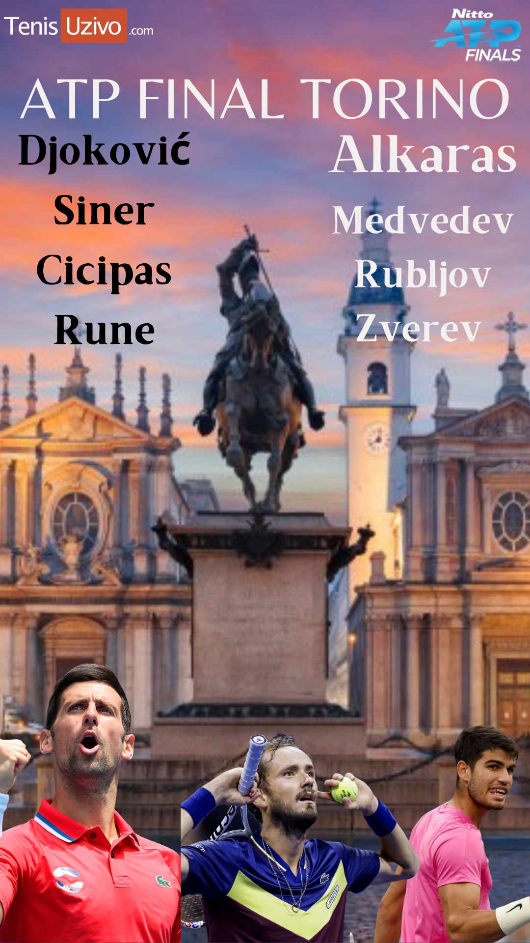 Novak Đoković braniće titulu i pokušaće da dođe do rekordnog sedmog pehara. Jedna pobeda u grupnoj fazi garantuje mu i prvo mesto na ATP rang listi na kraju godine i 400. sedmicu na vrhu – na njemu će ostati i ako Karlos Alkaras doživi samo jedan poraz.