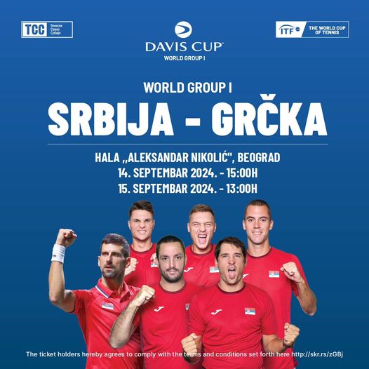 Teniski savez Srbije saopštio je da su ulaznice za mečeve Svetske grupe I Dejvis kupa, između Srbije i Grčke, u prodaji.