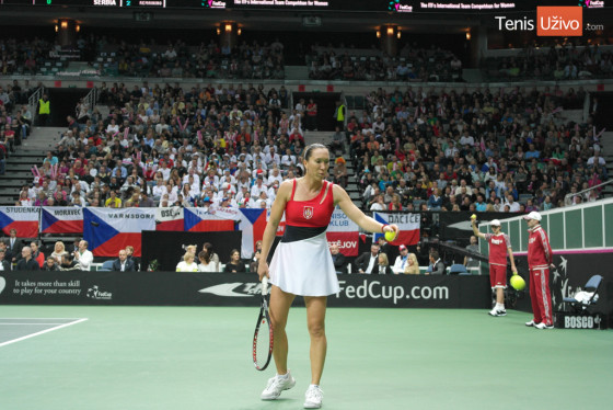 Duel je počeo brejkom Gavrilove i Svitoline, ali su već u četvrtom gemu Jelena Janković i Kagla Bujukakaj uzvratile iskoristivši četvrtu brejk priliku za 2:2. U daljem toku seta brejkova nije bilo, a kada se očekivalo igranje taj-brejka Srpkinja i Turkinja su u dvanaestom gemu iskoristile set loptu za 7:5, a samo nekoliko gemova ranije uspele su i da spasu jednu set priliku svojih rivalki.
