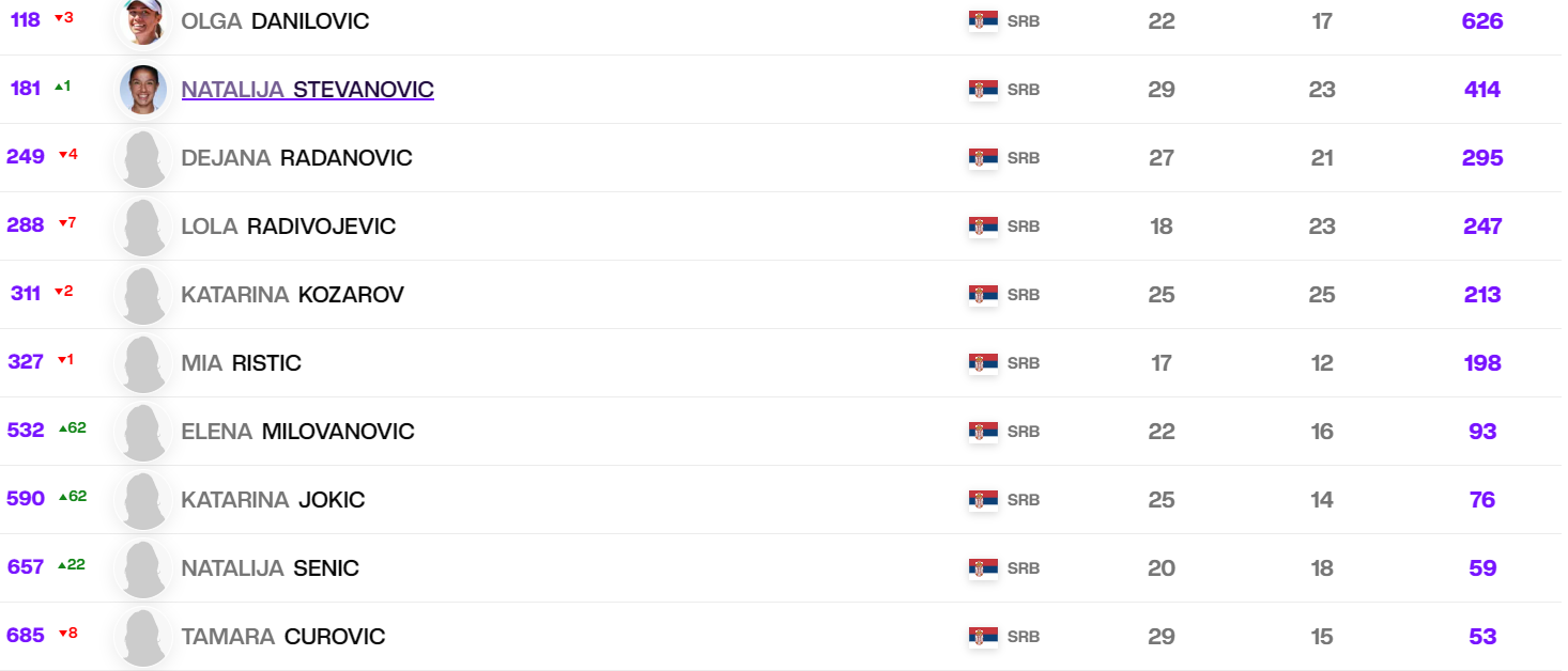 Teme: Dejana Radanović, Iga Švjontek, Koko Gof, Lola Radivojević, Natalija Stevanović, Olga Danilović, Vesti, WTA, WTA Rang Lista